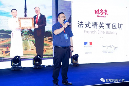 味多美CIO在会上发表演讲,描述支付宝刷脸技术在商业上对味多美的助力